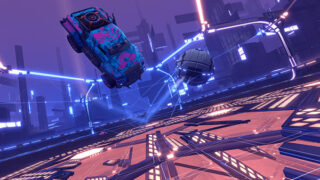 Dropshot includes the “Core 707” arena, where players must break through hexagonal floor panels with an electrified ball to create and score goals through the gaps. Each panel can be hit by a ball twice—the first hit activates the panel, while the second breaks the panel. The electrified ball has three different faces, each more powerful than the last, that determine how much damage is done when the ball smashes into the floor panels.