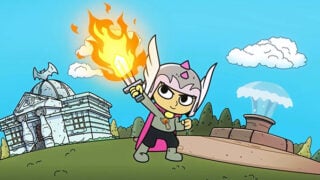 - Weapons, Items, & Stickers: Wield the traditional sword and bow combo alongside the decidedly less traditional vinyl record Frisbee, magic golf club, and colossal foot from the heavens to put Mormo and her legions back on their heels. Collect and equip stickers to boost up your hero and add perks to their gear to become powerful enough to banish the wicked sorceress.