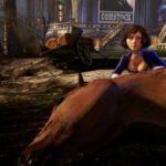 A new set of BioShock Infinite screenshots have dropped down from the sky. The images focus in on female companion Elizabeth, the burning of political propaganda, and enemies falling from the floating city of Columbia.