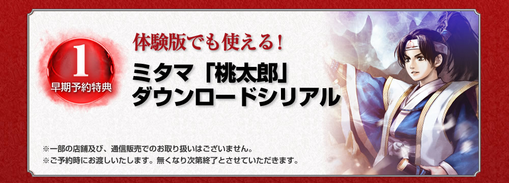 Pre-order bonuses for the game include download codes for the Momotaro and Yae Niijima mitama.