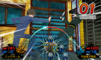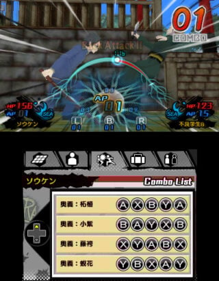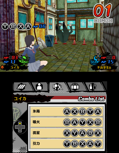 During Adventure Parts, players can run around a 3D recreation of Kobe, and head to places like Chinatown and the shopping district to solve cases. And during Battle Parts, players can use their Minimum abilities in a turn-based battle system. Through command input, players can perform various attacks.