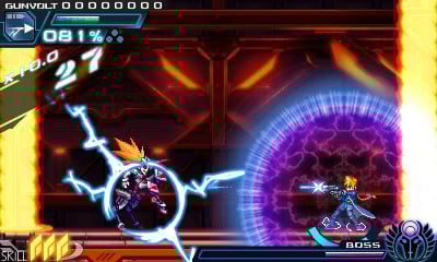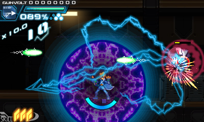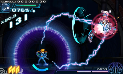A psychic boy named Gunvolt has joined a rebel force to strike back. His goal is to free the world from Sumeragi’s control. Gunvolt’s ability is lightning. He can fire lightning rods at his enemies and zap them.