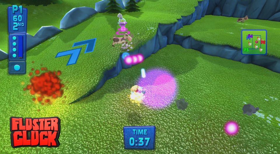 Fluster Cluck, due out this summer and available to play at E3 next week at the Nyko booth, puts players in control of Chikkin Koop employees Pimento and Cornichon, and must help them “chikkinize” everything in sight in hopes of being promoted to middle-management.