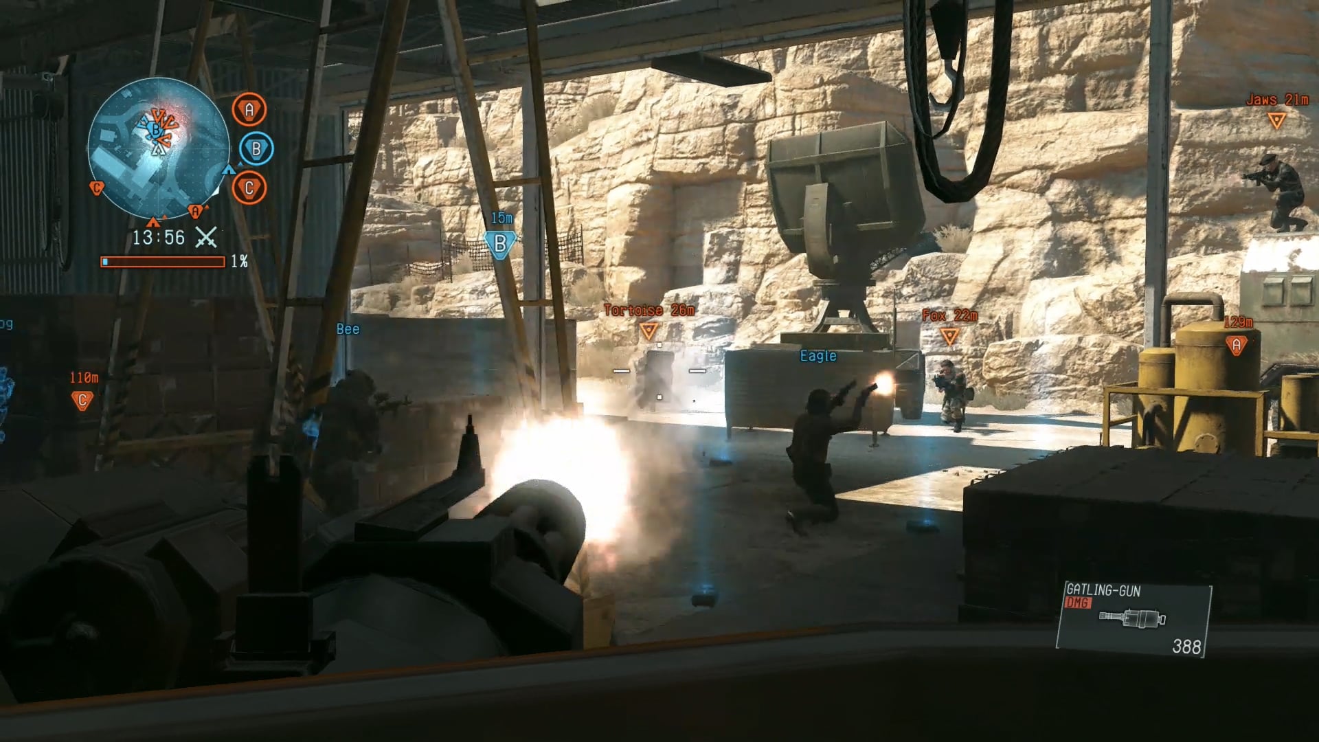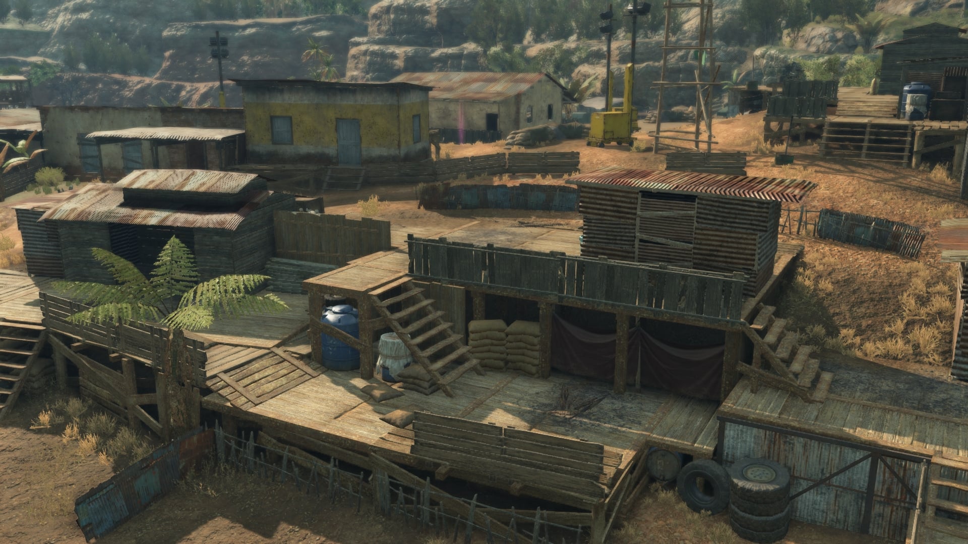 - Black Site – The infamous US military base nine years after the events of “METAL GEAR SOLID V: GROUND ZEROES”. It contains a multi-level base with mostly flat and spacious surrounding areas.