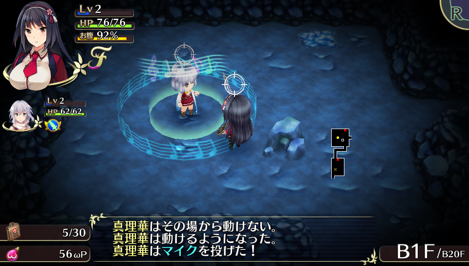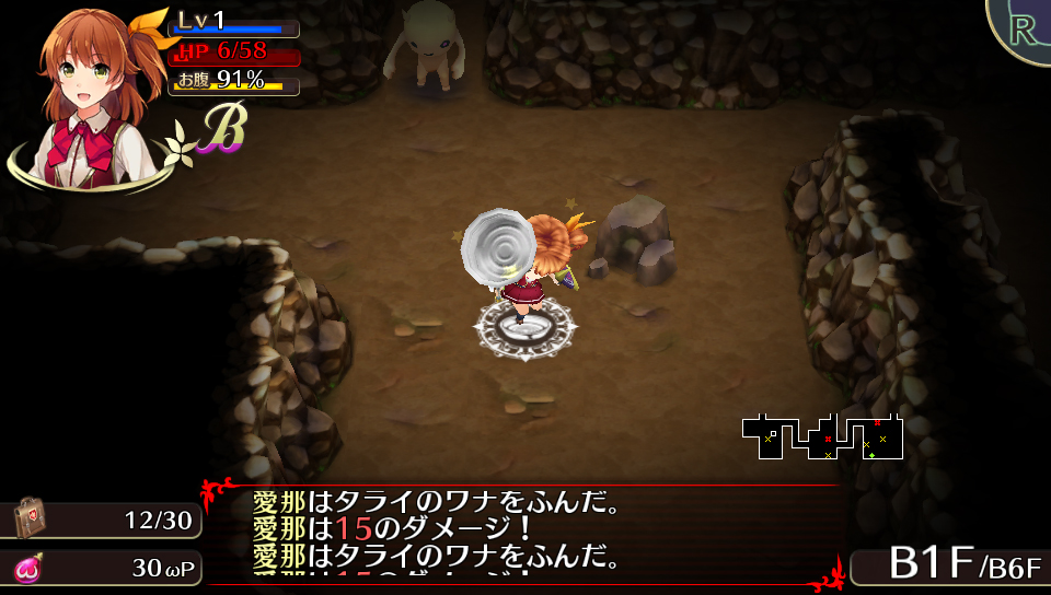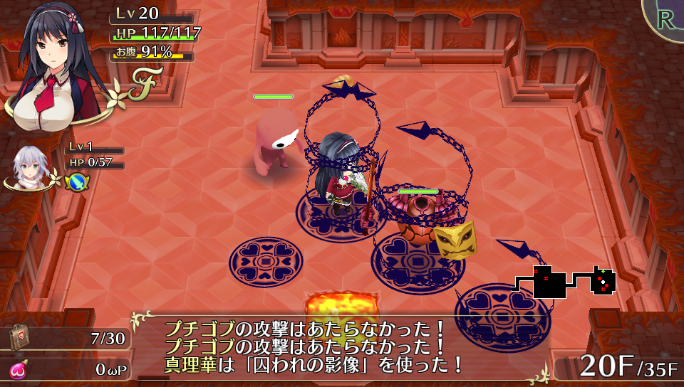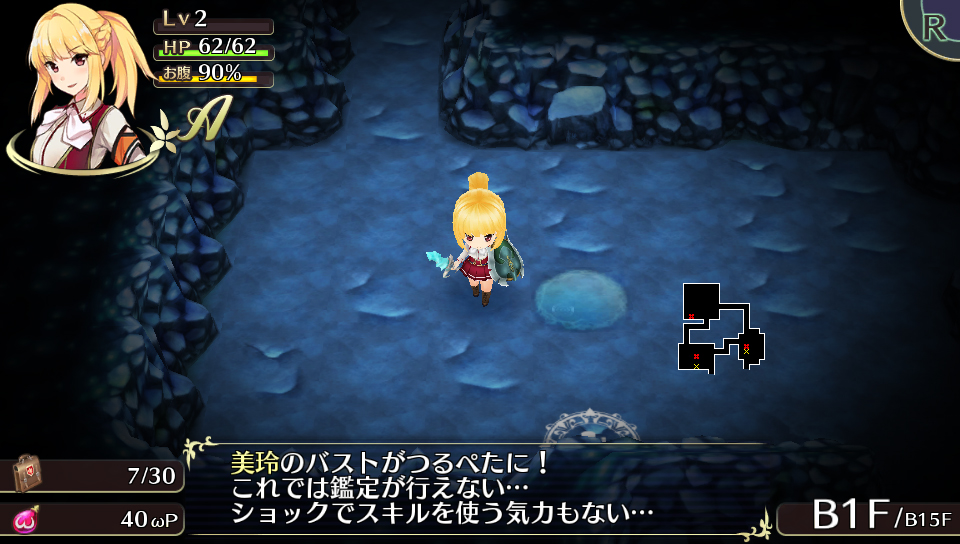 Oppai means a big chest, so chippai means a small one. Within the dungeon, there are traps called “Tsurupeta Traps.” This basically means “smooth and flat.” This trap turns your character’s breasts to A cup size between several turns. This also affects characters whose breasts are large from the get-go (like Mirei’s E cup and Hana’s F cup). These traps affect your status, and the shock of your shrinking chest means you can no longer use your skills. And since you can’t hold an item between your breasts with an A cup, that means no Oppai Appraisals, either.