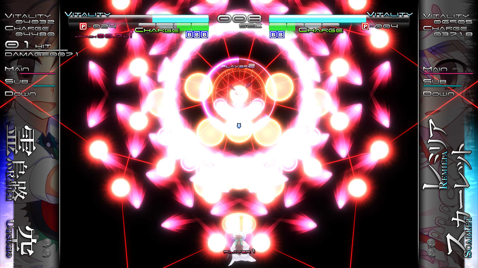 The game features a Story Mode featuring the characters of Touhou Project, local and online competitive multiplayer modes, leaderboards, a variety of special bullet types, and more.