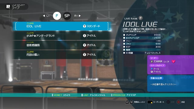 You can select a concert to be held in accordance with the idol rank of the idol you’re producing.