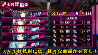 Players will be able to set the skills that are available to them for use during combat. Within those settings, you can also increase the number of skills you’re able to set through “Skill Inventory Expansion.” Skill Inventory Expansion can be done by spending the “Blood Crystals” you obtain in battle.