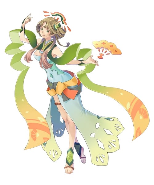 A “goddess to train goddesses” that the player and Tsukumo will meet at the beginning of the game. She’ll accompany the player and Tsukumo on their journey in a temporary form. She has wide knowledge and talents, possesses great supernatural power, and stands at the top of all other goddesses… Or rather, she should, but somewhere along the line ended up getting manipulated by the goddesses with stronger personalities and suffered many hardships. Since she’s very caring and has a friendly personality, she is greatly trusted by the other goddesses. She worries a bit because she looks somewhat young to hold such a high position.