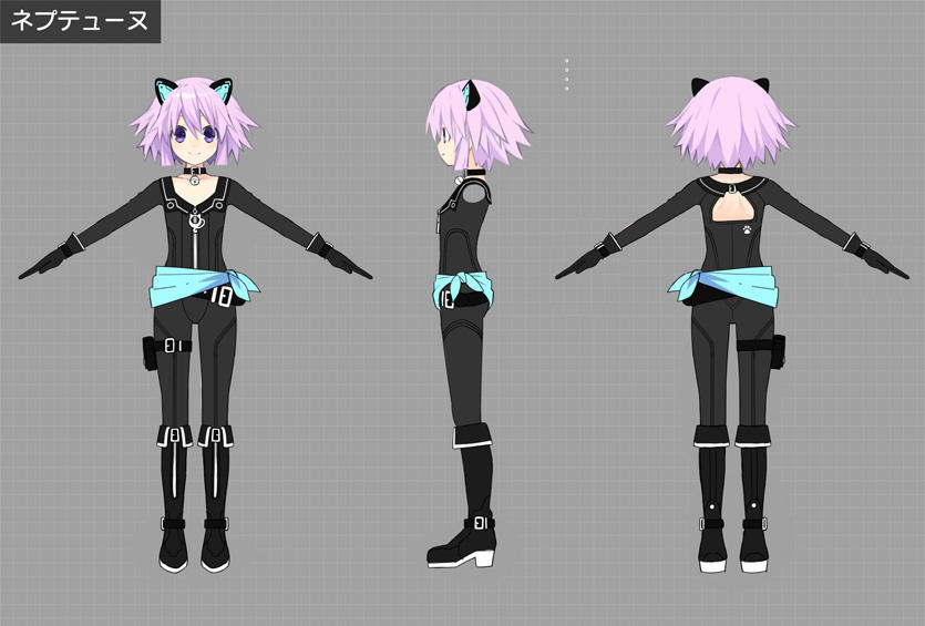 Also pictured is the “Cat Suit Set” costume downloadable content included as a pre-order bonus. It features cat suits for all eight characters (Neptune, Noire, Blanc, Vert, Nepgear, Uni, Rom, and Ram).