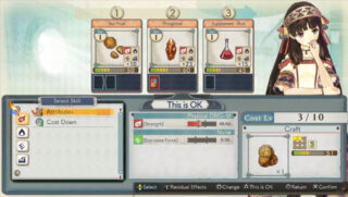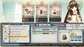 Atelier Shallie Plus: Alchemists of the Dusk Sea features a Synthesis system which allows players to craft more efficient items using ‘Synthesis Skills’. These abilities can be utilized by adding certain materials to the cauldron which can bestow a variety of effects upon the final item, such as granting extra uses or increasing the resulting effect. All materials fall under one of four elemental attributes: fire, water, wind and earth. When combined successfully, these elements can activate a ‘Chain’ which further enhances items, resulting in bonuses stronger than those obtained through executing standard synthesis.