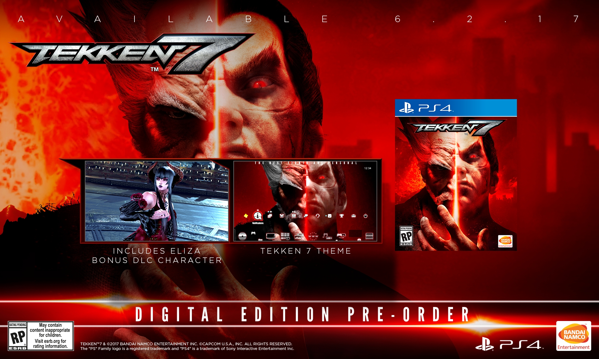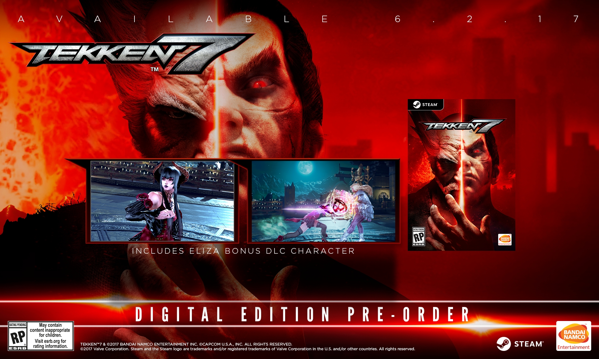 - Tekken 7 Pre-order Bonus (available today for PlayStation 4, Xbox One, and Steam) will feature DLC access to Eliza, the famed vampire character that made her Tekken debut in Tekken Revolution. Xbox One players will be treated to an added bonus of receiving a free copy of Tekken 6 that takes advantage of the backwards compatible capabilities of the Xbox One platform.