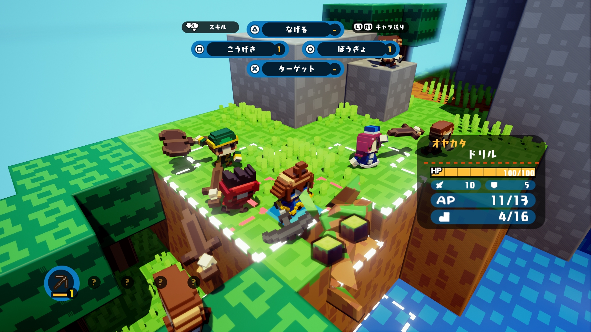 The game is a new simulation RPG with a crafting element. Maps, which are made up of blocks, can be “destroyed” by character attacks, which changes its terrain.