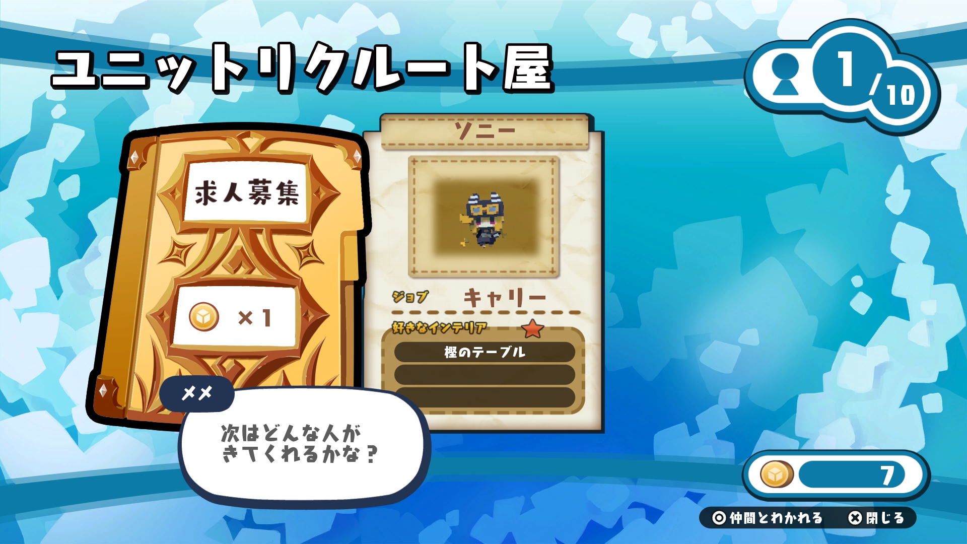 By talking to Meme, who is stationed at the base, you can hire new recruits. Coins are necessary for employment, but strengthening your personnel is essential for becoming a big company.
