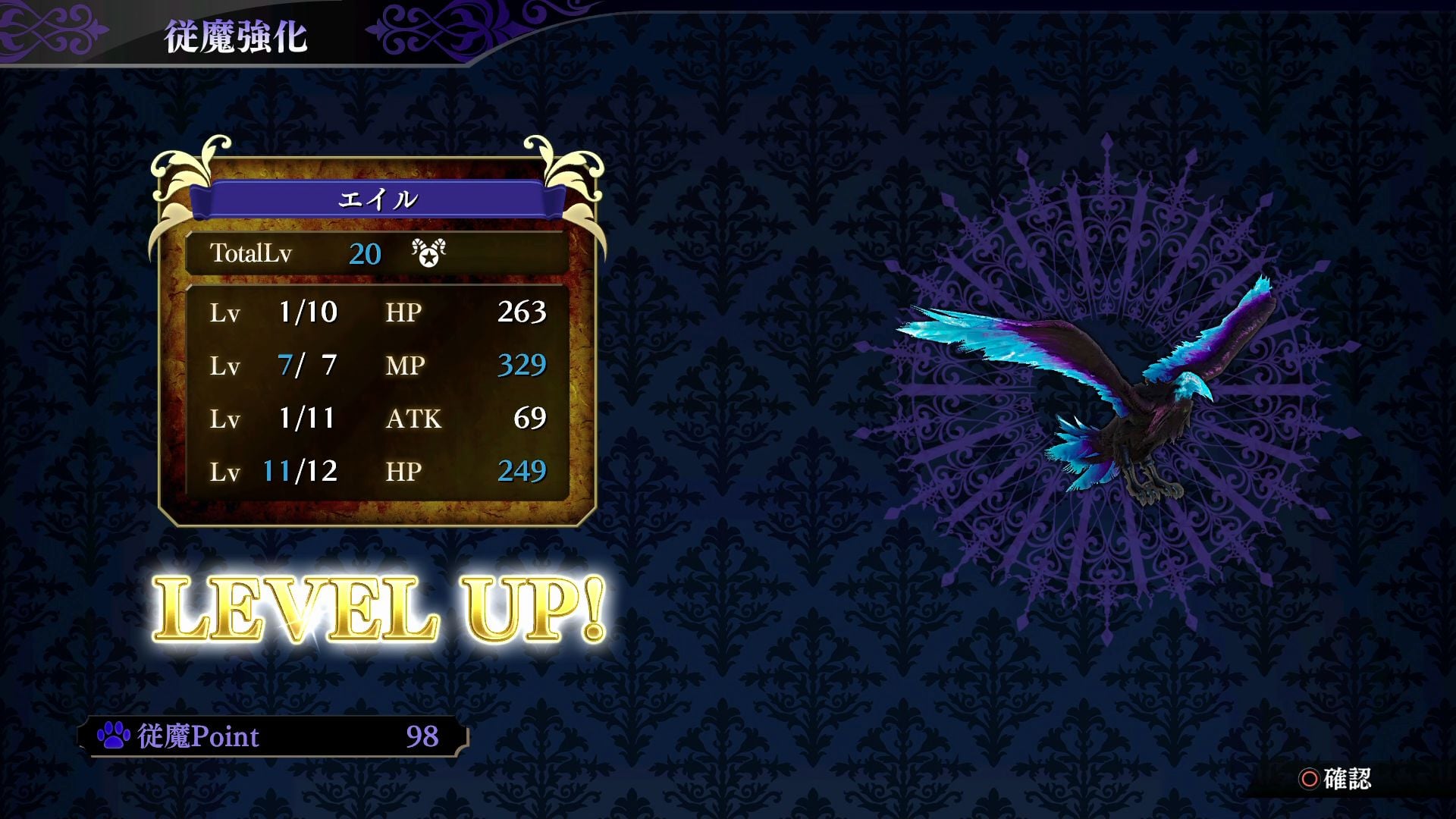 —Then its attack power will increase and it will become a more reliable subordinate demon in battle. Through this repeated development, each parameter will eventually surpass a certain value, its appearance will “evolve,” and its parameters will further rise. Additionally, by reaching MAX for all parameters, you can perform a “reincarnation” to return them to level one and expand its limit of development.