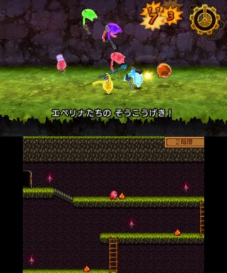 —During battle, the party’s status and actions are displayed on the bottom screen.