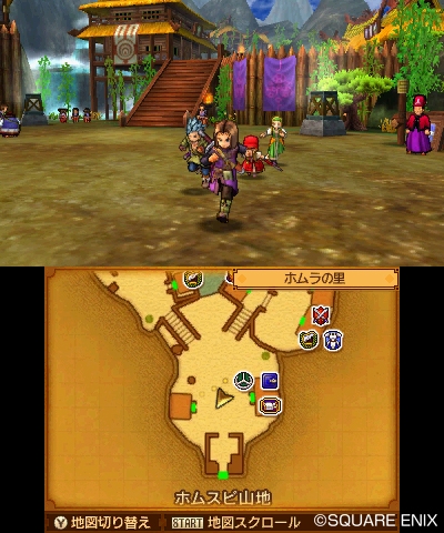 3D and 2D modes, Yocchi Village, and past Dragon Quest worlds.