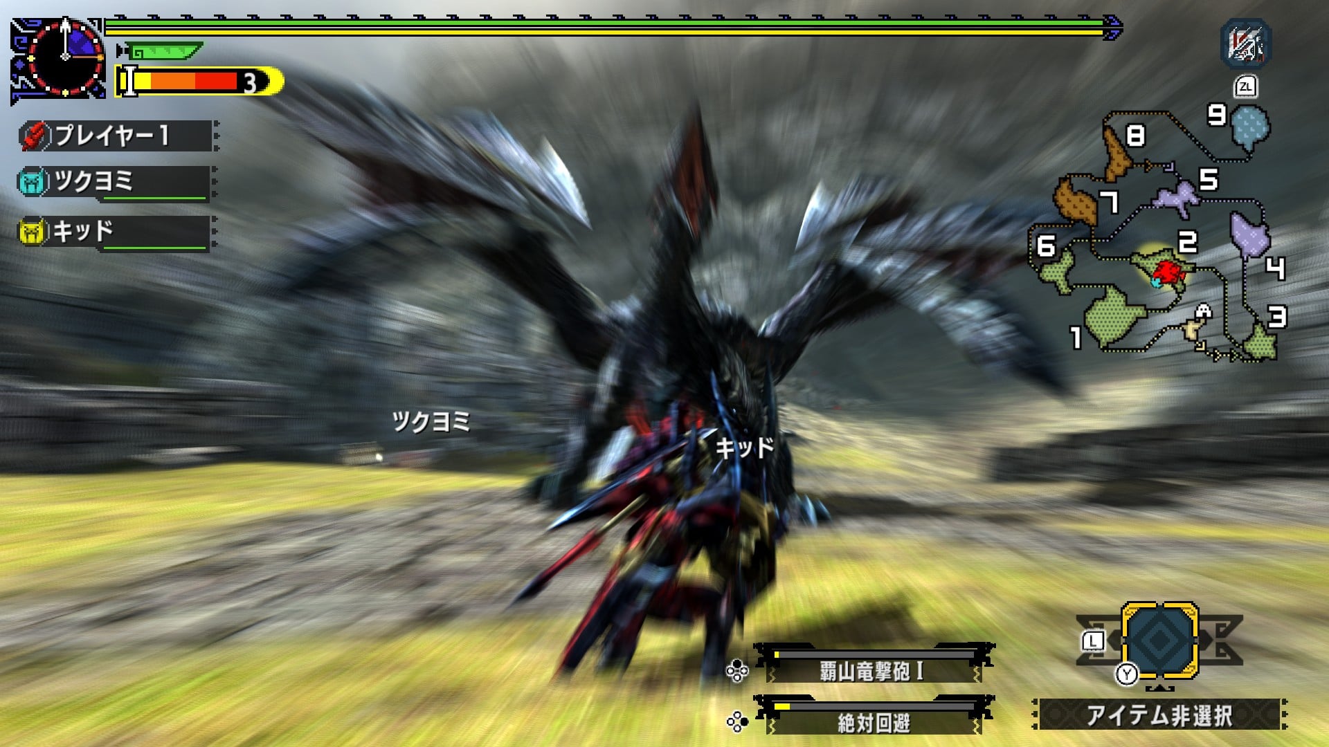 - Target Camera – There is an icon in the upper right of the screen for the Target Camera. By pressing the ZL button, you can turn the Target Camera on or off. If you press the L button once while the Target Camera is on, the camera will turn to face towards the monster. You can also control the camera using the right analog stick.