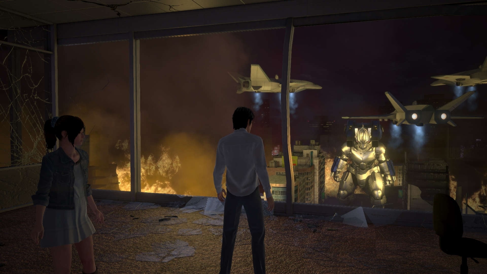 A fierce battle unfolds between Godzilla and Type 3-Kiryu, but suddenly the mechanical Godzilla’s systems start running wild. It starts moving towards the building the protagonist is in while firing its rockets. At this rate, they will collide with the building…!