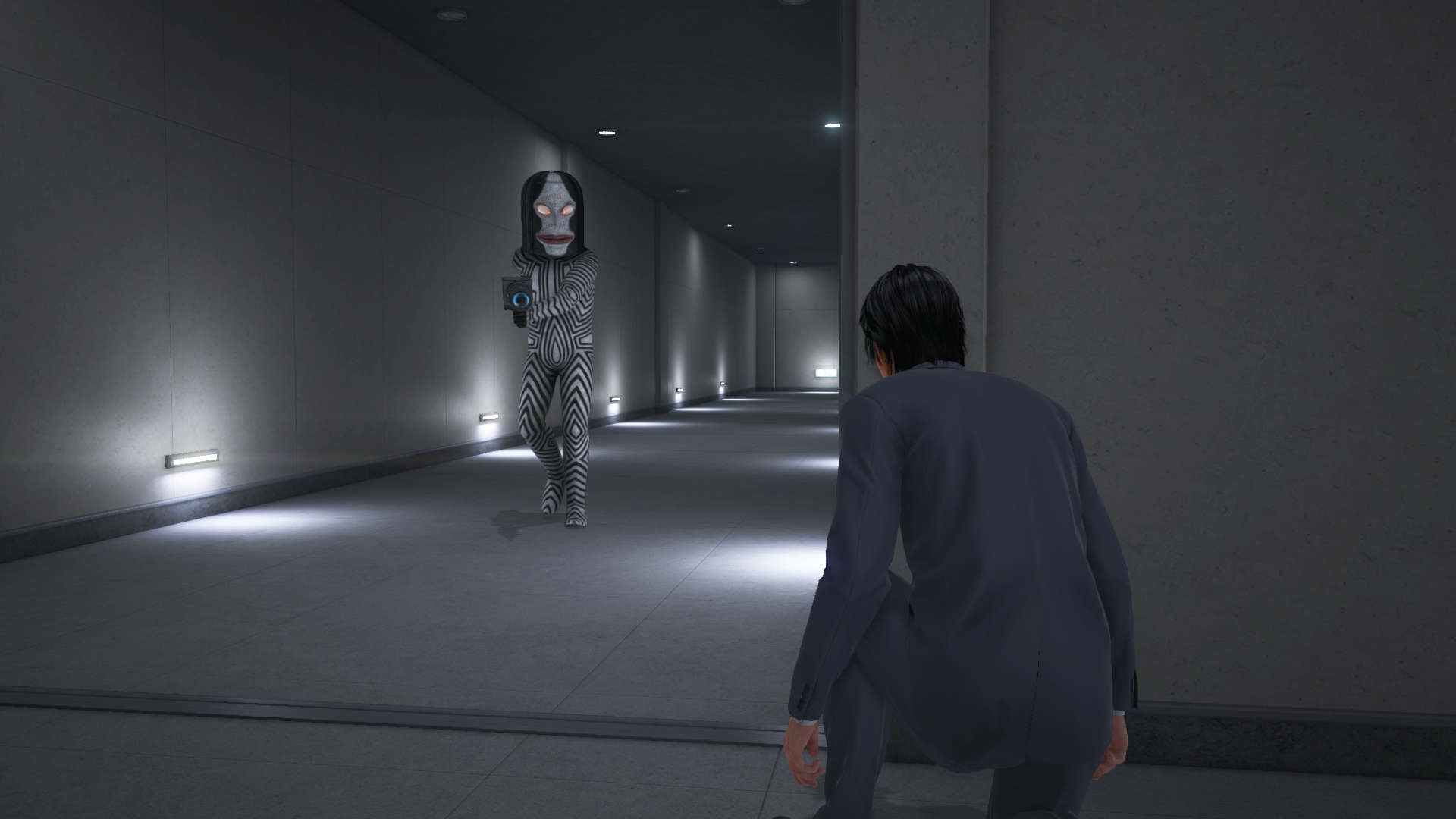 The gun-wielding Shibata and Mudou persistently chase after the protagonist and company. Weave your way through the shadows of the containers as not to be found.