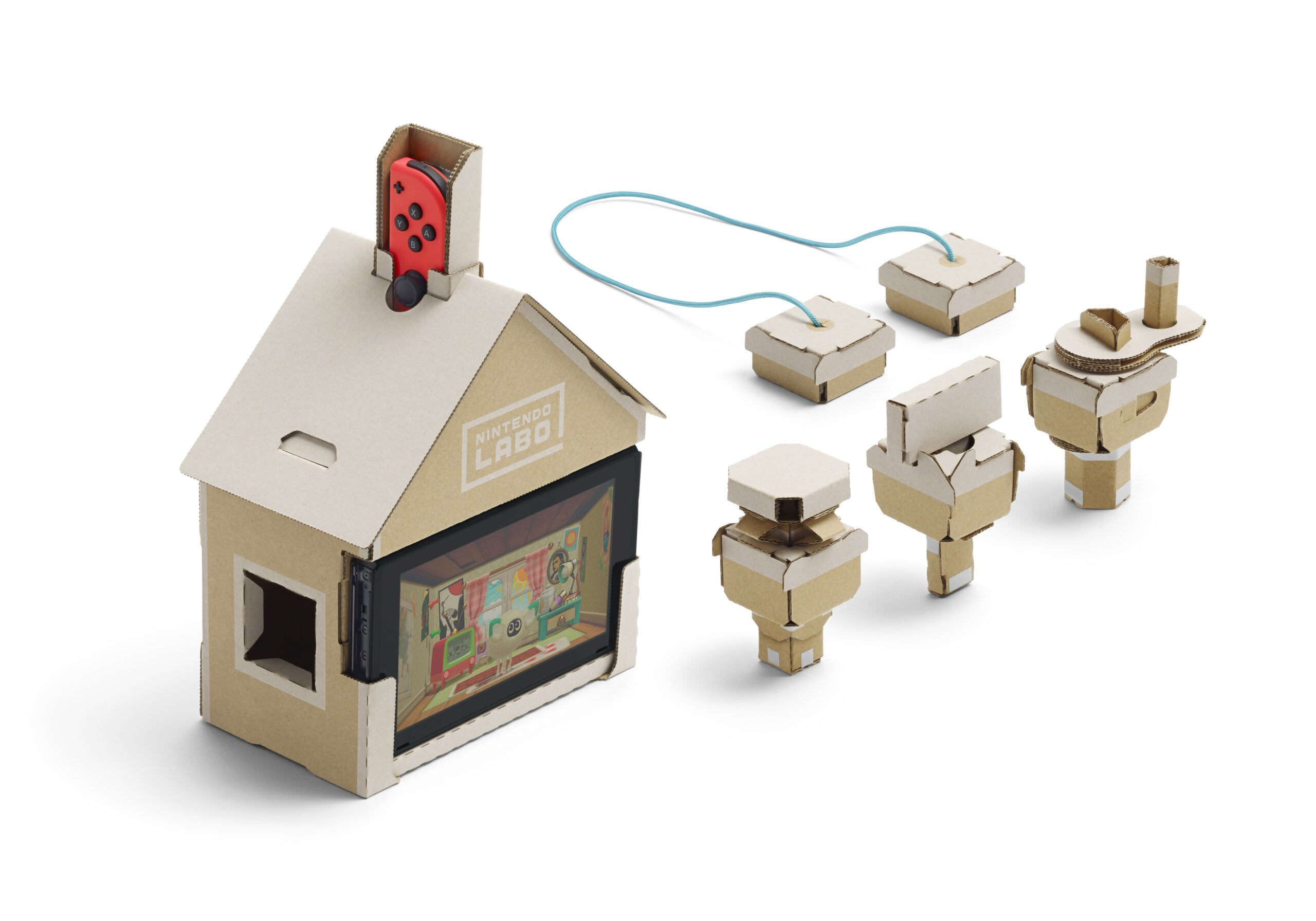 1 House – By inserting various assembled blocks into openings in the sides and bottom of the House, you can interact with, play games with and feed a cute creature on the front-facing Nintendo Switch screen. Each differently shaped block is detected by the IR Motion Camera on the Right Joy-Con inserted on top of the House.