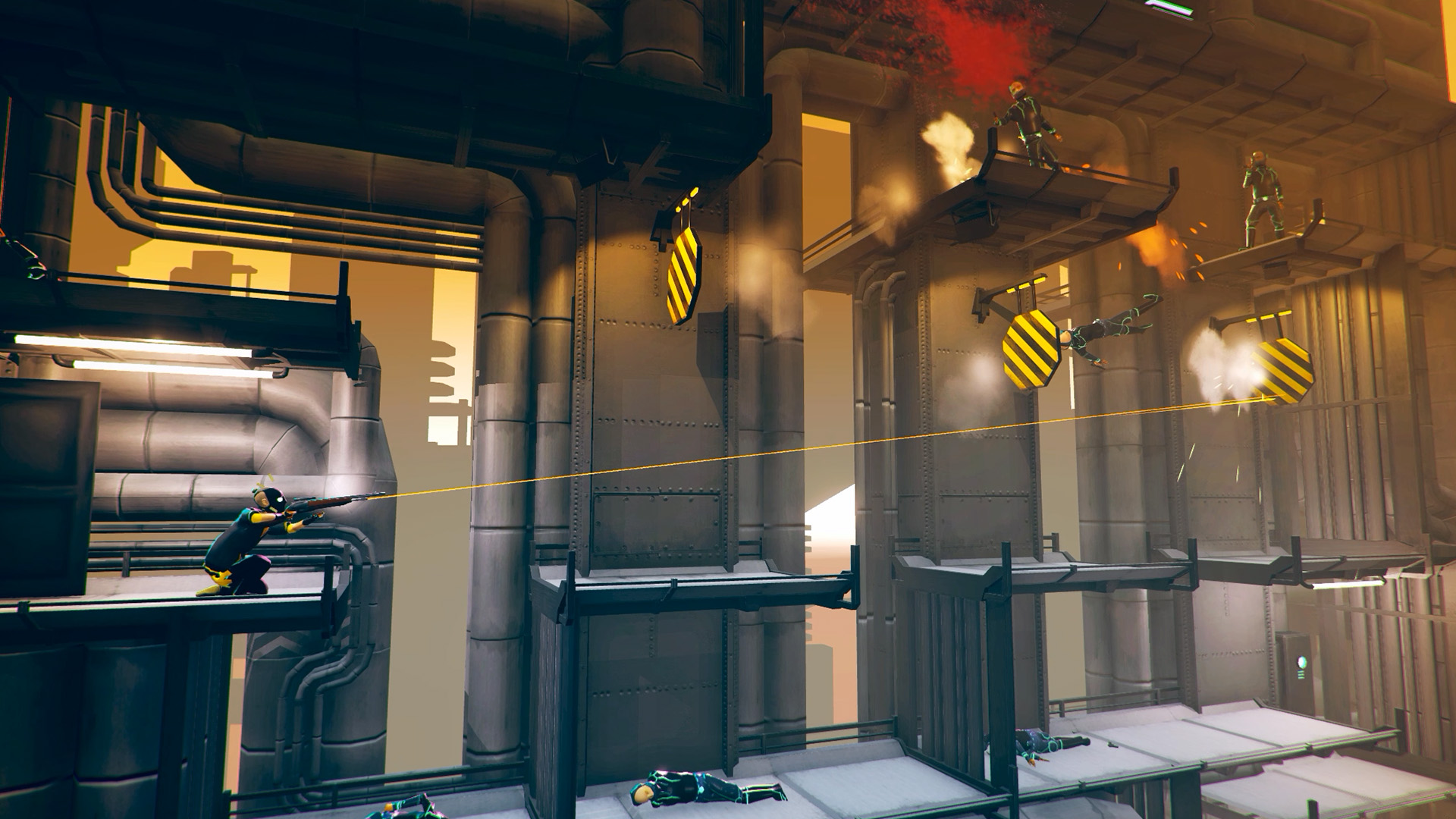 - Full Throttle Gun Ballet: Unleash a torrent of destruction with an incredible level of control over both your weapons and your body. Twist and turn through the air while aiming both hands at priority threats or line up a perfect ricochet to drop an unsuspecting gangster from behind.