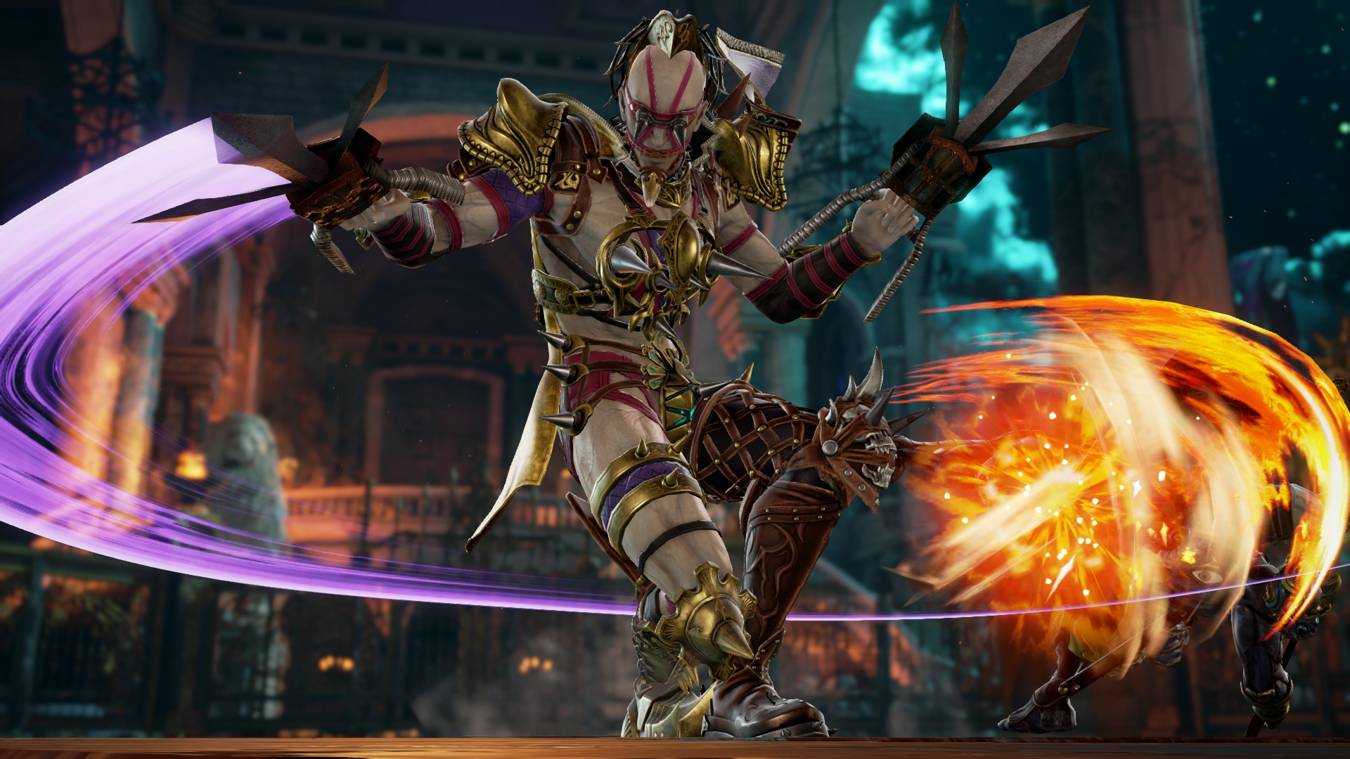 Fan-favorite Voldo returns to the stage of history in Soulcalibur VI with his signature style and maniacal moves. Voldo is a long-time character in the Soulcalibur franchise, being one of only five characters to show up in every main installment of the Soulcalibur series. Voldo was the right-hand man to Vercci, an arms dealer with the nickname “Merchant of Death”, and was tasked to protect the Money Pit, where all of Vercci’s treasures were kept after his death. After spending years in the dark depths of the Money Pit, Voldo lost his eyesight but gained a heightened sense of hearing and awareness, making him extremely deadly to those who dared to enter the Money Pit in search of riches. Voldo’s fighting style is unmatched, as he contorts his body in unnatural ways and can even attack backwards, making him unpredictable and deadly in battle. Both longtime fans and new players will enjoy the exotic gameplay that accompanies this distinctive character in Soulcalibur VI.