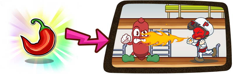 Whether it is a “Chili Pepper” that lets you blow fire from your mouth, a “Nugget” that stops enemy movement for a short time, or something else entirely, BurgerTime Party! features various items with fixed time effects that players can obtain. Use them wisely to overcome difficult situations.