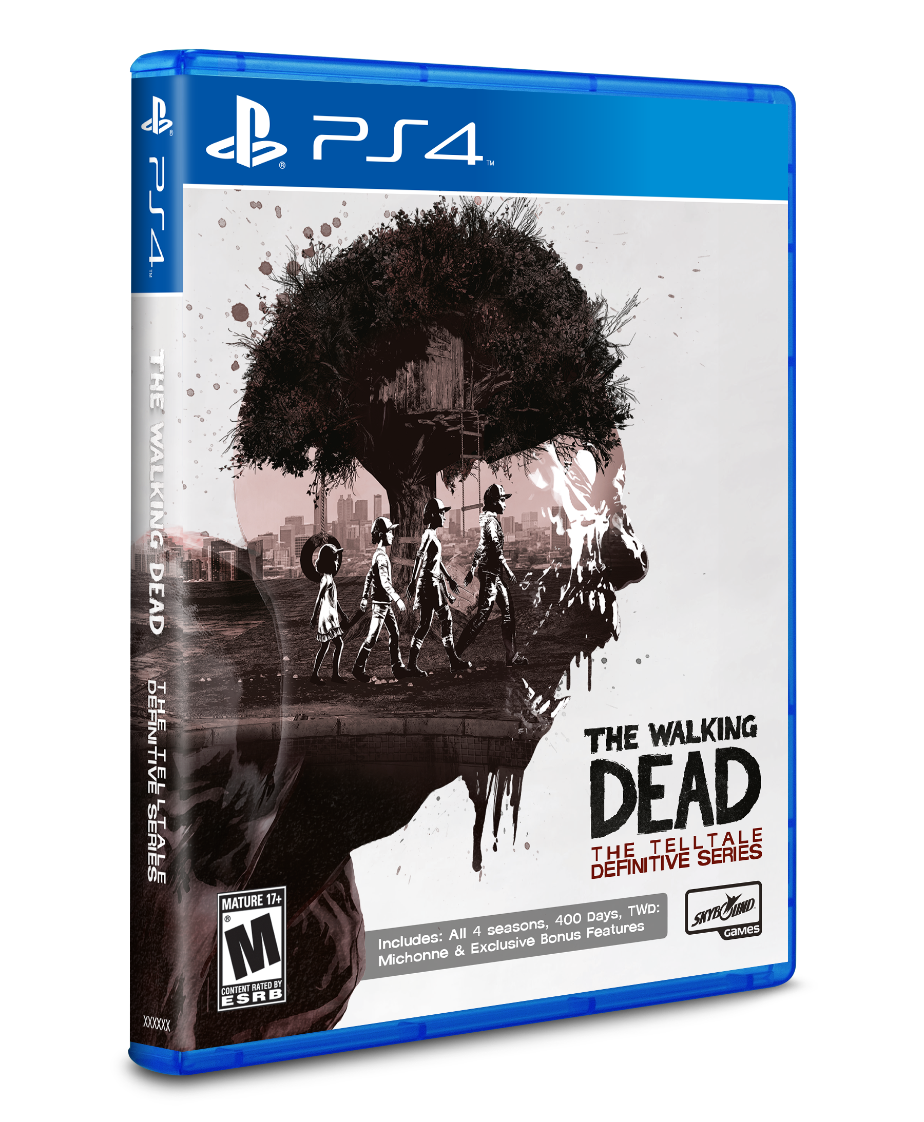 The Walking Dead: The Telltale Definitive Series contains all four seasons of the series, along with The Walking Dead: Michonne, 400 Days downloadable content, and several digital bonuses. There are over 50 hours of gameplay across 23 unique episodes, more than 10 hours of developer commentary, behind-the-scenes bonus features including concept and character art galleries, a “Return of The Walking Dead” documentary short, faithful recreations of classic menus, and a music player with over 140 musical tracks. The collection also includes the application across all seasons and content of “graphic black,” an art style that pays homage to The Walking Dead comics and was previously only available for The Final Season.