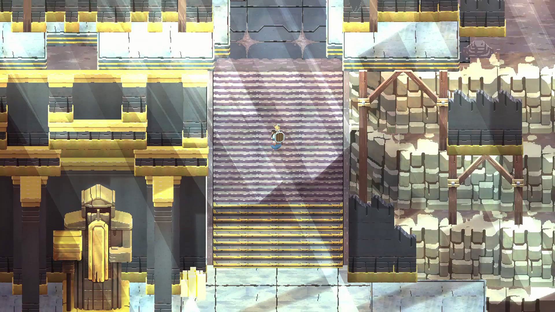 No Place for Bravery’s art conveys the goals of its gameplay by featuring an incredibly detailed pixel world, a stirring soundtrack and hand-painted textures. Characters feature fluid animation, all created in a style drawing inspiration from medieval, high fantasy and apocalyptic fiction.