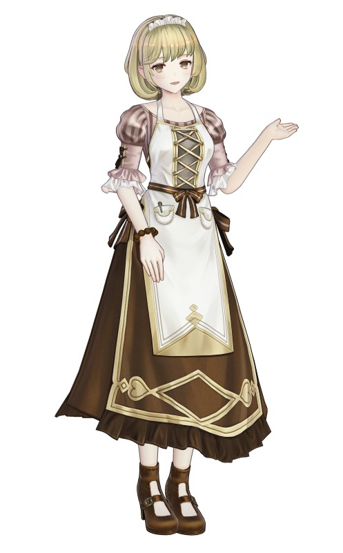 A woman who runs a shop in the royal capital. She used to travel from place to place, mainly as a peddler, but has settled down in the royal capital for the time being. In her peddling days, she often visited Kurken Island and is acquainted with Ryza.