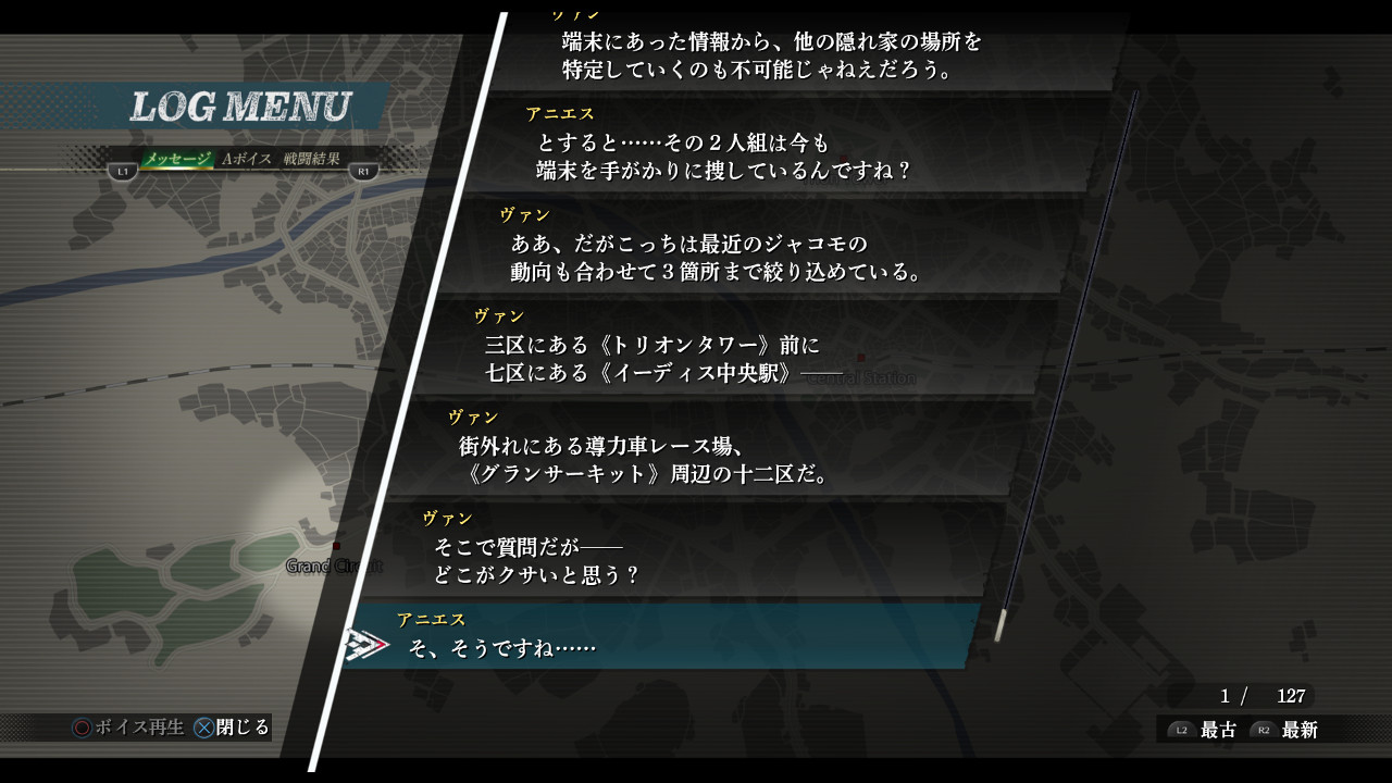 - Log menu support during event decisions (L2 button + up on the D-pad).