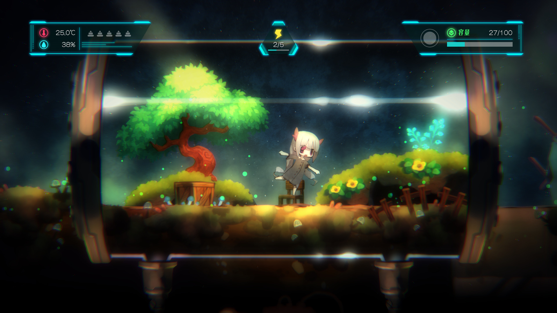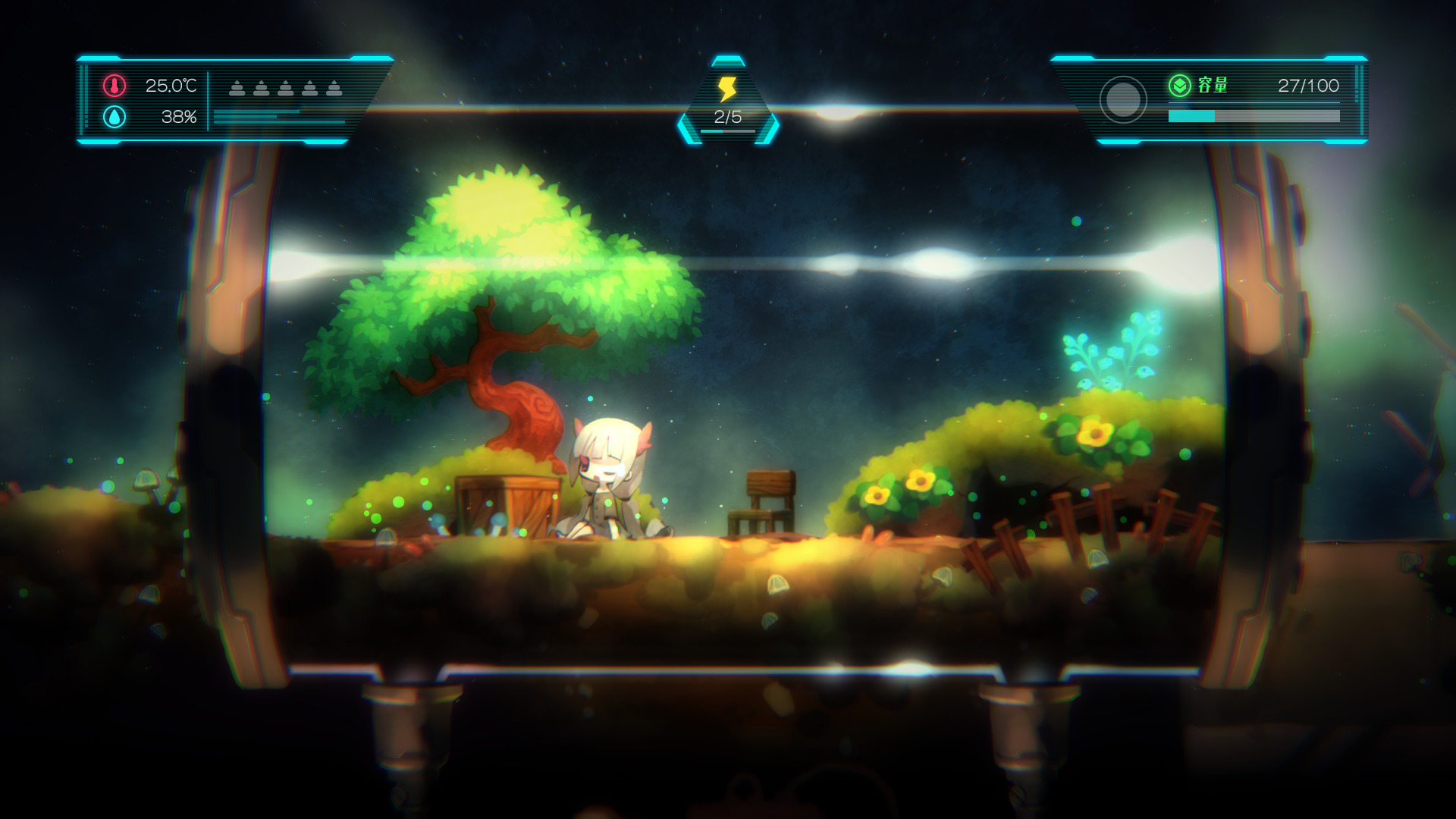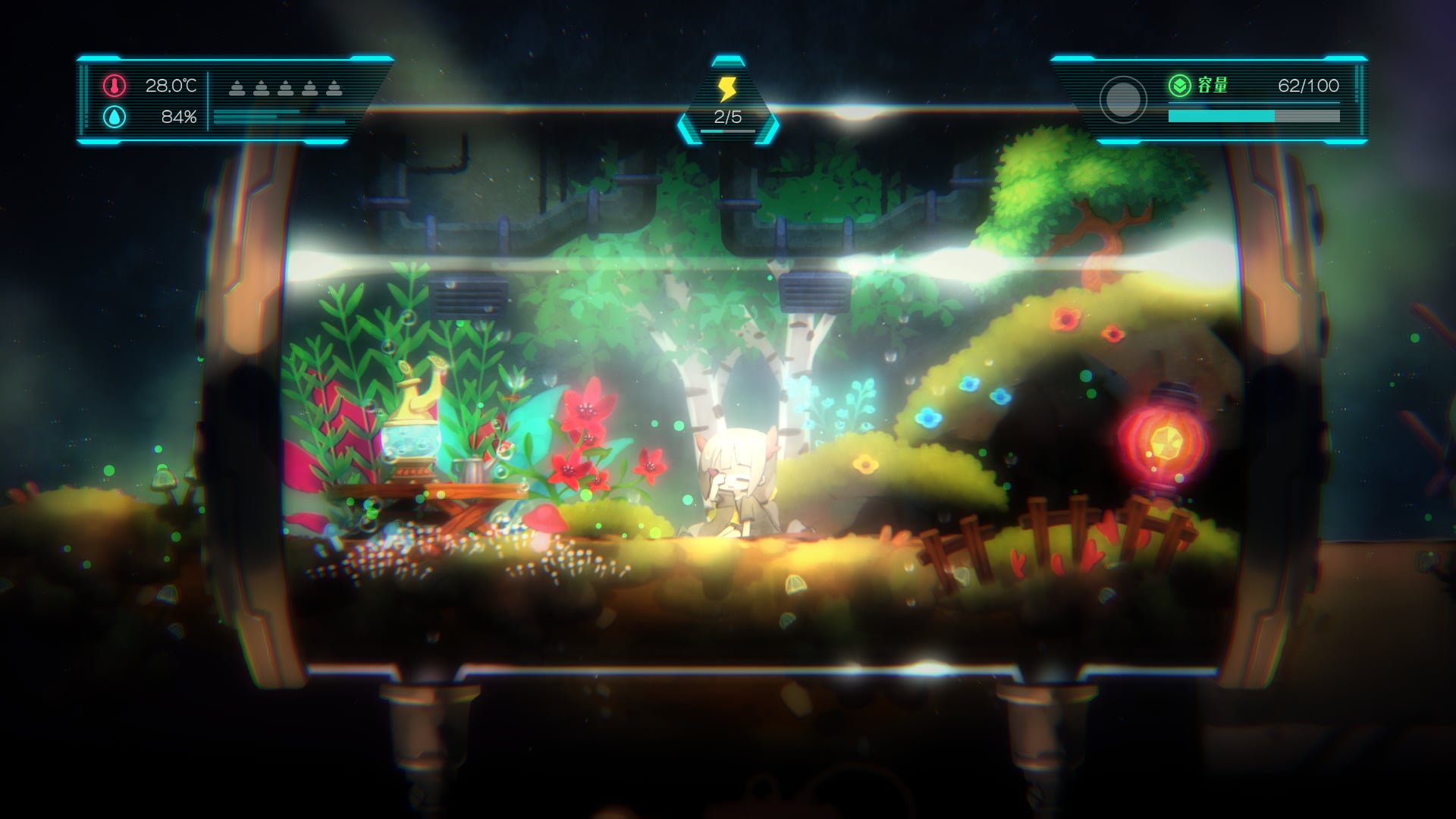 Give Toriko food when she is hungry, and work with factoryAI to treat her when she is feeling under the weather. It is also important to flesh out the environment inside the terrarium for Toriko, who waits by herself while the robot is out exploring.