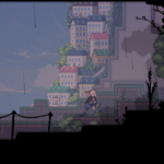 - Unique pixel art style depicting a fantastical town with witches and magic.