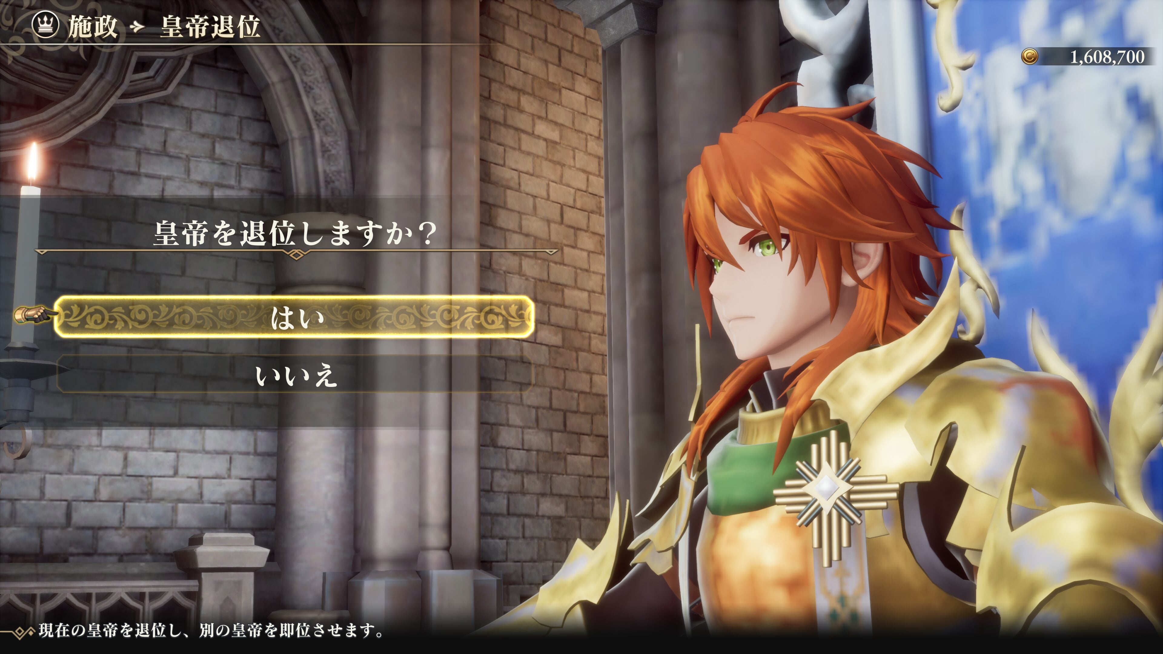 Through the Inheritance system, you can select the next Emperor and pass down the powers of the previous generation to them. Inheritance automatically occurs when the current emperor is reduced to zero LP, when the party is wiped out, when time moves on to the next era, or when the current ruler abdicates.