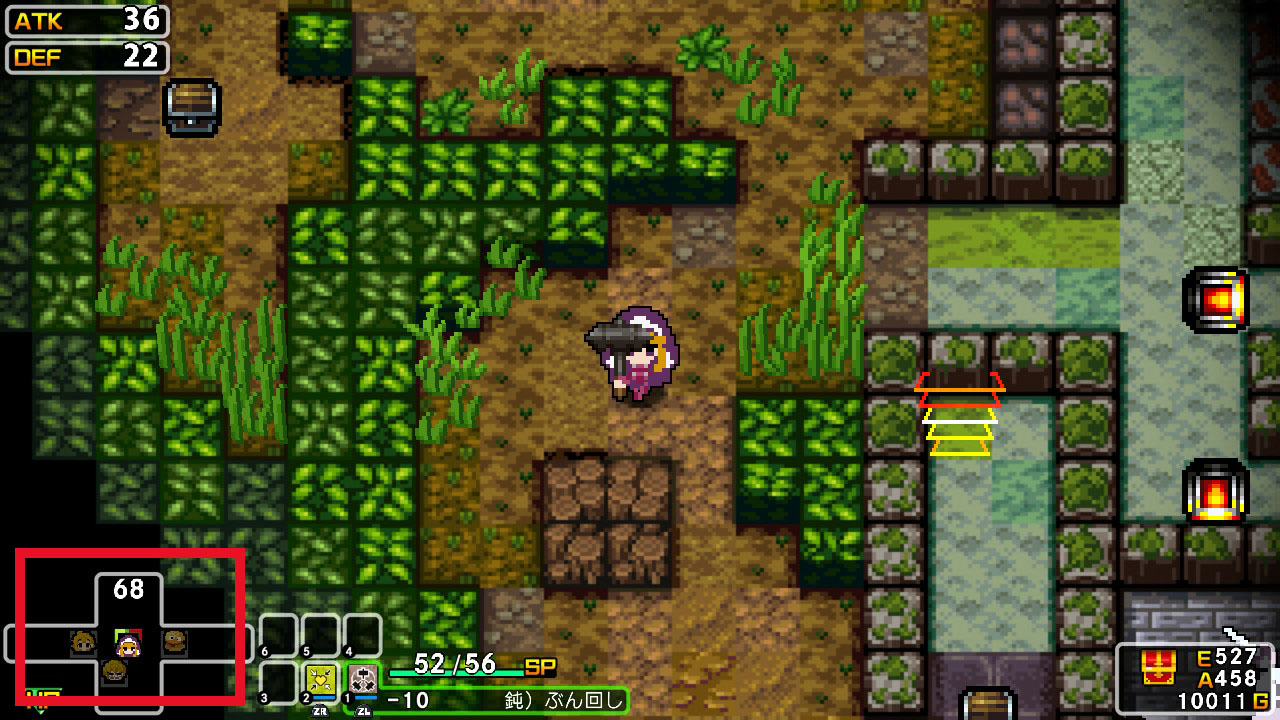Fixed Spaces have various effects, such as always reviving dead supporting characters when passing through a dungeon gate, or switching the equipped weapon to the one placed on a space while active.