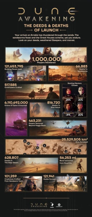 Total worldwide sales for open-world survival massively multiplayer online game Dune: Awakening have surpassed one million units, making it Funcom‘s fastest selling game to date, the company announced.