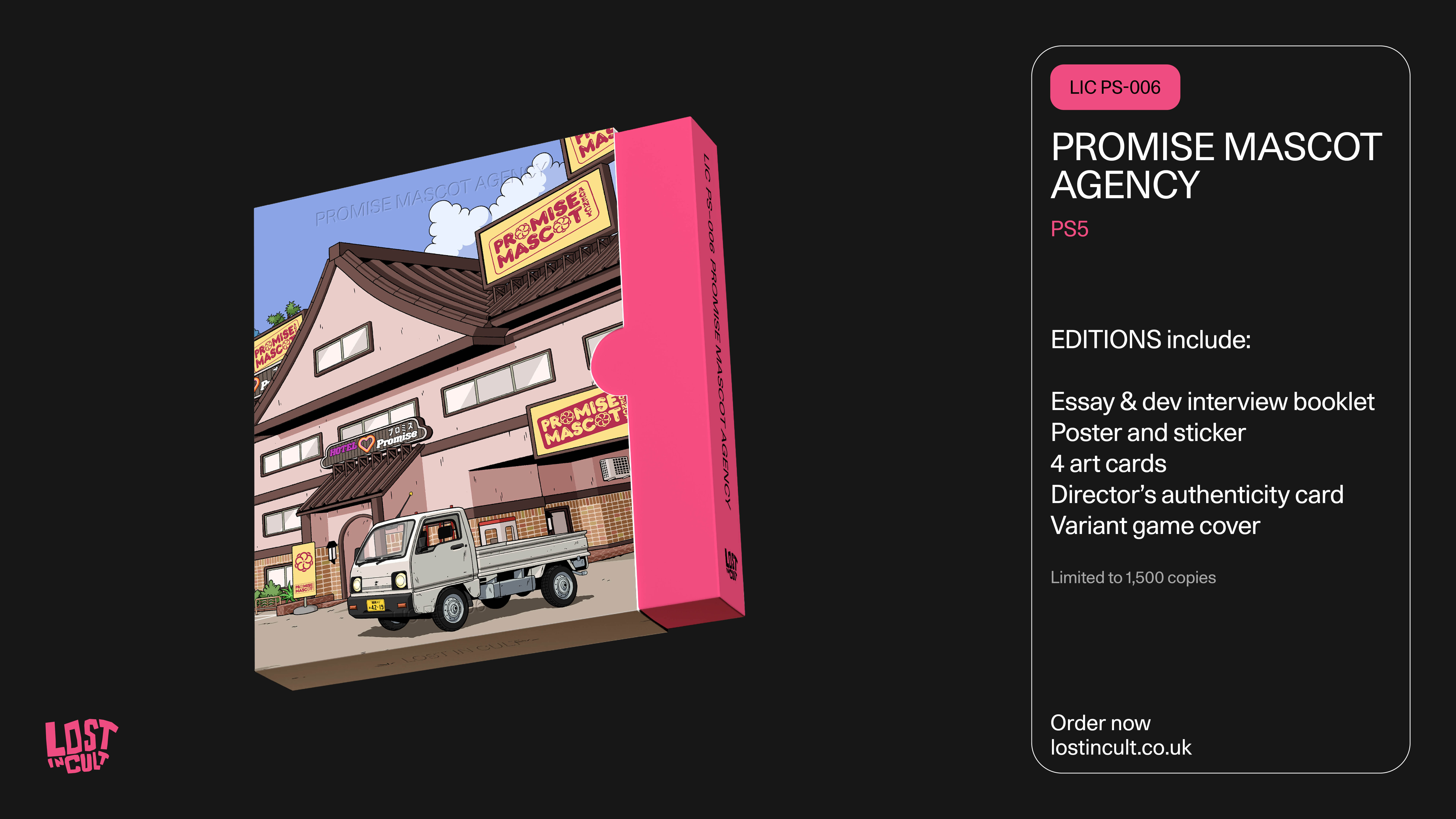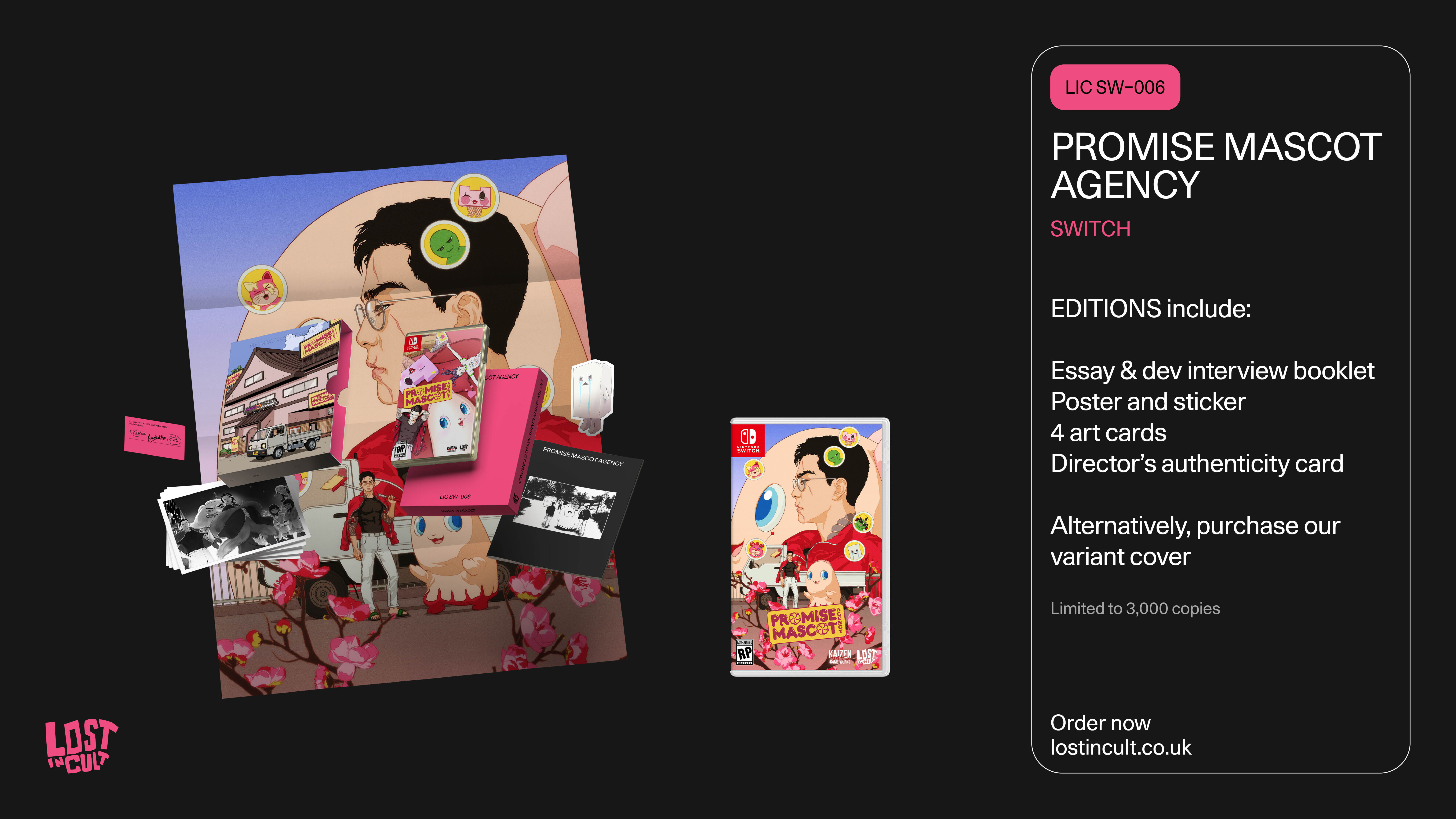 Lost in Cult will release physical editions of Kaizen Game Works-developed “open-world mascot management crime drama” game Promise Mascot Agency for PlayStation 5 and Switch, the distributor announced.