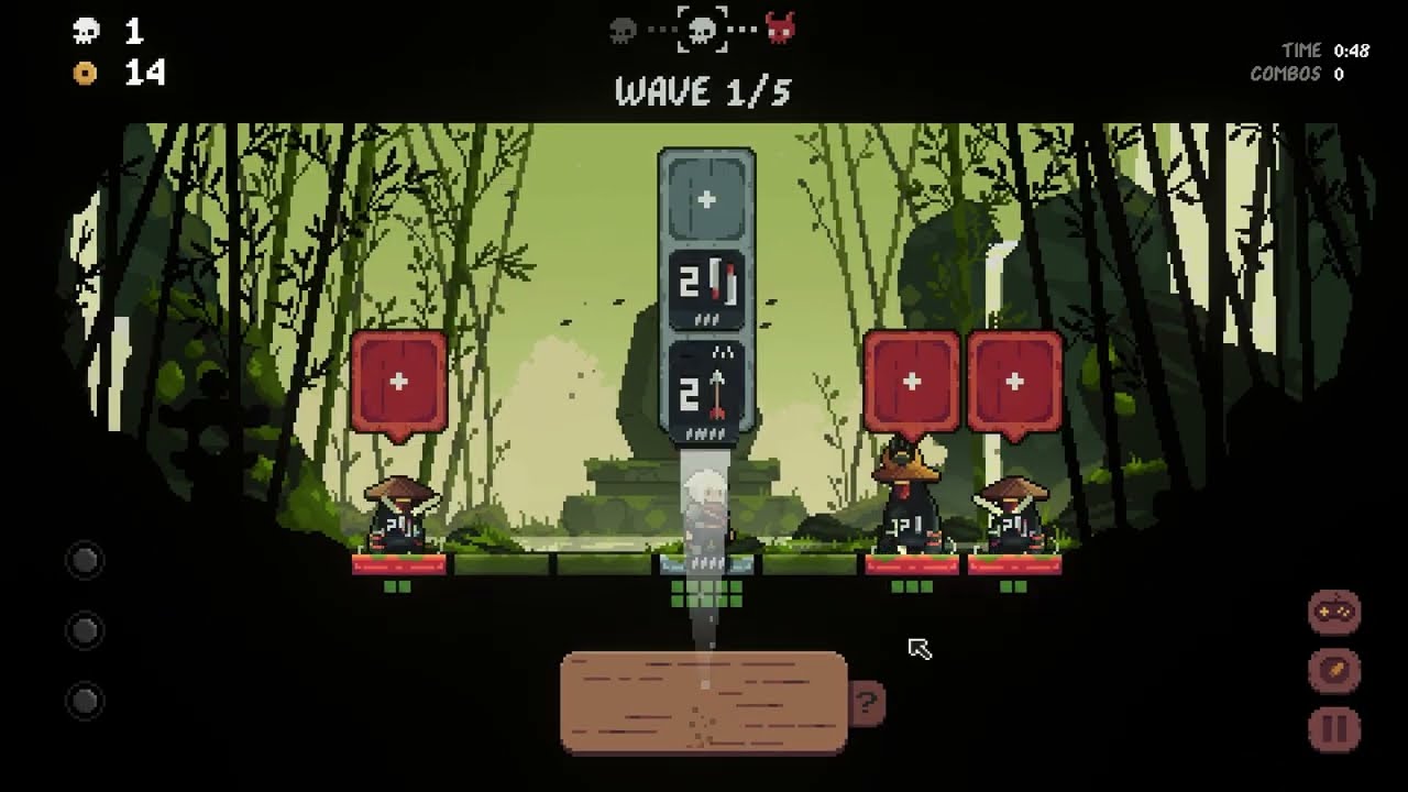 Shogun Showdown is a turn-based combat game with roguelike and deckbuilding elements. Position yourself and attack at the right time, upgrade your tiles and combo them to get ready to face the Shogun!