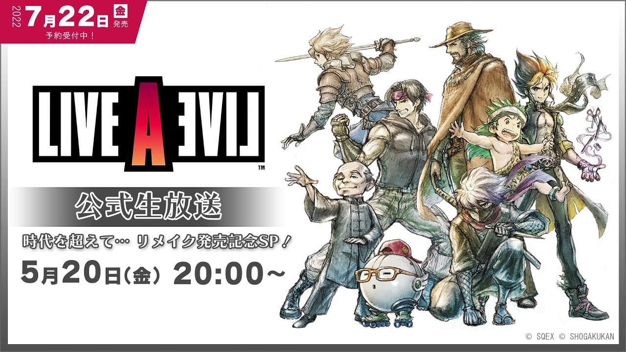 LIVE A LIVE Official Broadcast: Through the Ages… Remake Release Commemoration Special May 20, 2022 @ 7:00 am - 9:00 am EDT https://www.youtube.com/watch?v=WoNj1DlfL4Q Square Enix will host the "LIVE A LIVE Official Broadcast: Through the Ages... Remake … Find out more »