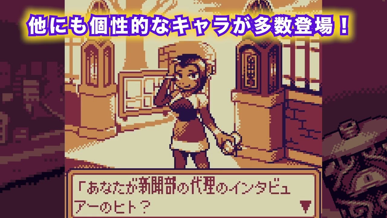 The four-color pixel art, low-resolution screen, and chiptune music create a nostalgic atmosphere reminiscent of retro game hardware from the 1990s.