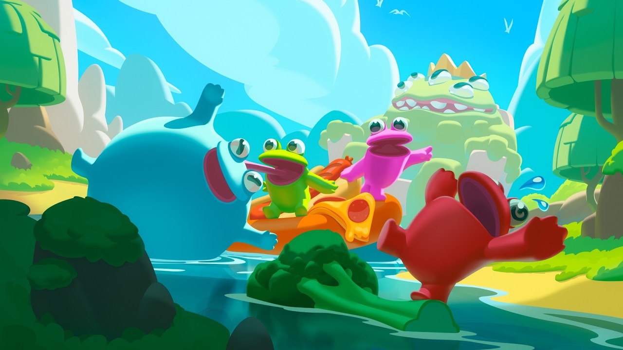 Storm The Sewers for the glory of the Swamp King! Swing, jump, catapult your friends, and eat eat EAT until you grow into a humongous Megafrog. A cooperative extraction puzzle platformer for up to eight players. Squad up with your frog friends for a friendslop party in this slapstick physics adventure!
