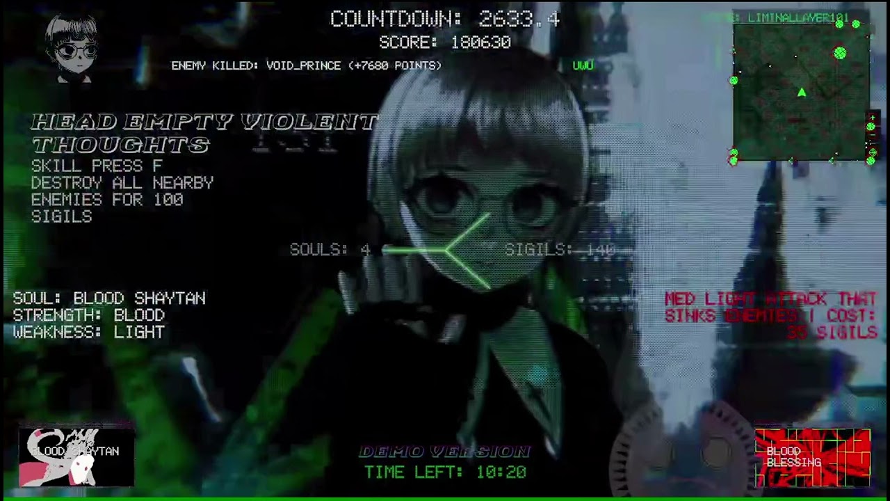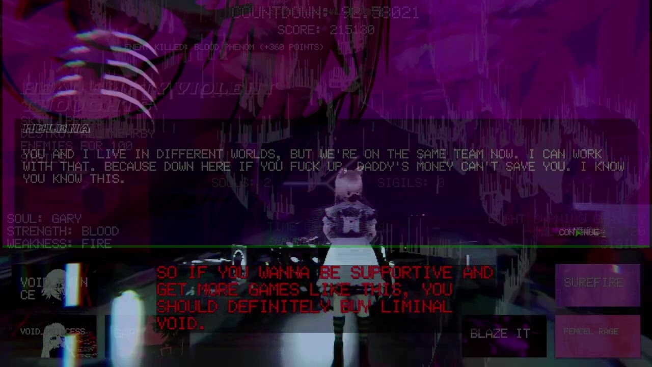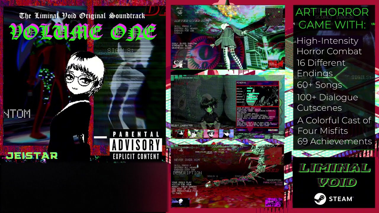 Liminal Void takes influences from Japanese horror, noise/breakcore electronica, punk, and even The Beatles to create an esoteric and visually stunning experience to remind you the joys of not knowing everything, free from the dependency of assurance and spoon-fed game mechanics. It is a game that is built from the ground up and comes at you with more hostility than other games. But that’s okay, it will love you more than any other game ever could. You get A LOT of chances.