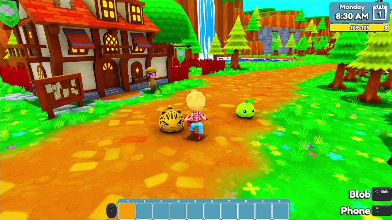 After moving to take care of a farmstead in a quaint little hamlet called Clover Town, you’re introduced to something that changes your life forever: Blobs! Blobs are cute, wobbly, and rotund creatures which hatch from eggs. Treat them with care and they can become your greatest companions! Coming in dozens of varieties (with all of them being cross-breedable!), Blobs can face off against rival blob trainers and help you out around the farm with their unique abilities.