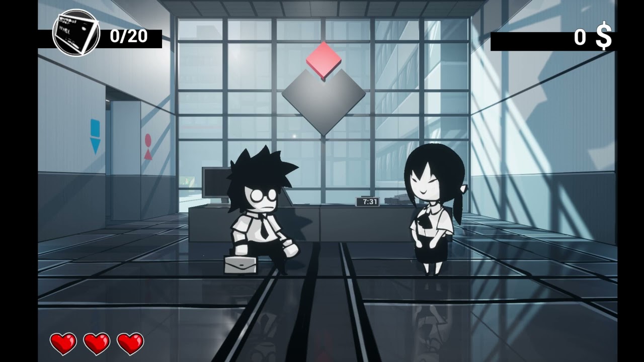 The story begins on an ordinary morning when you arrive at the company as usual, only to discover that all your colleagues believe you’re about to resign. They see you as a traitor to the company and gang up on you. To figure out what’s going on, you embark on a journey to protect yourself with your briefcase. After witnessing the darkness within the company, you decide to quit by defeating the company!