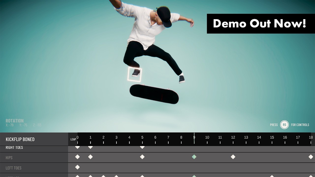 - Animation Studio – Dial in your trick style to perfection. Tweak body movement, foot placement, timing, and flow with a powerful built-in animation editor. Create signature styles, replicate legendary pros, or invent something entirely new.