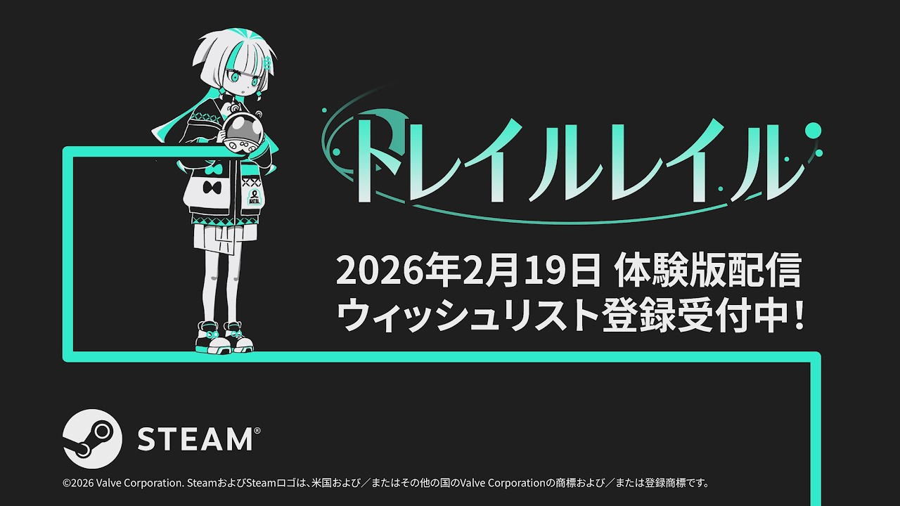 TrailRail is a 2D physics-based action puzzle game that uses a system to materialize the player’s “movement trail” with a single button press.